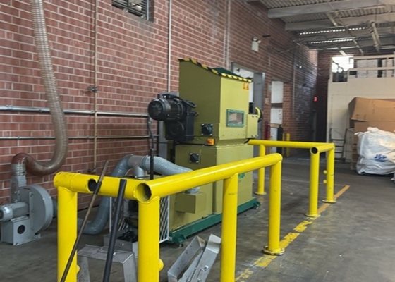 Nach Klärung der Anforderungen besuchte GREENMAX umgehend den Standort von Modern Polymer, um die Abfallmaterialien vor Ort zu begutachten. Das zu verarbeitende Material hatte eine Dichte von bis zu 4 lbs (64 kg/m³). Für diese hochverdichteten Schäume entwickelte GREENMAX die speziell angepasste Styropor-Recyclingmaschine M-C200, ausgestattet mit einem Doppel-Zerkleinerungssystem und einem leistungsstarken Motor, sowie individuell angepasster Heizleistung.