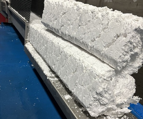 Hier kommt der EPS Verdichter ins Spiel: Er kann Schnittreste und Schaumstaub zu kompakten Blöcken verdichten, die entweder an Recycler verkauft oder direkt dem Produktionsprozess wieder zugeführt werden können.